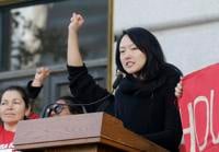 Supervisor Jane Kim speaks at a rally outside of City Hall in San Francisco, Wednesday, Jan. 25, 2017,